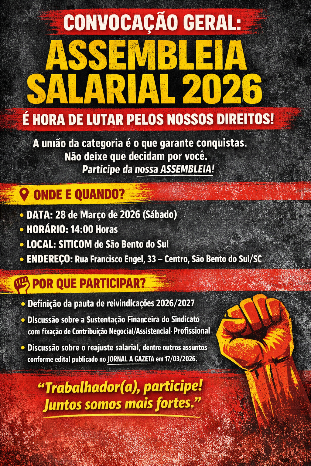 Importante frisar que o movimento sindical vem trabalhado para que cada companheiro ou companheira tenha o melhor para a sua vida e de sua família. Em todos estes anos, lutamos por salário digno, redução de jornada de trabalho para 40 horas, educação de qualidade, melhores condições de saúde, transporte de qualidade, dentre outros.